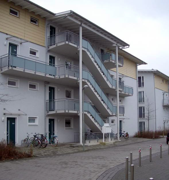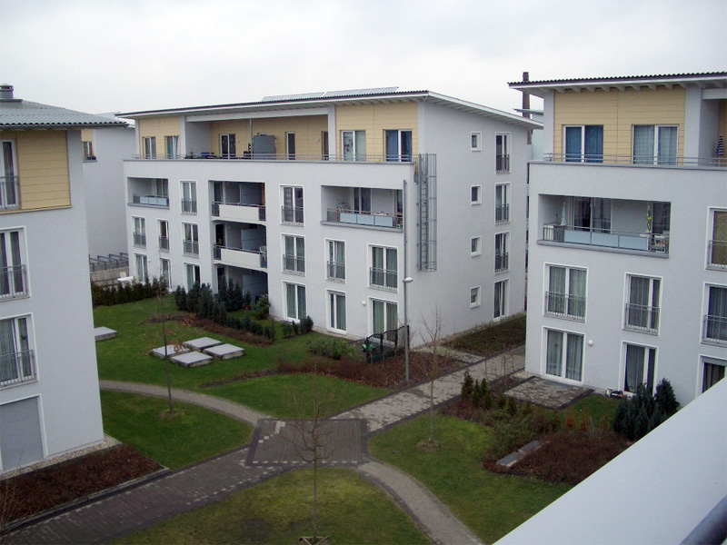 „Ein neues Verhältnis von Mensch, Natur und Technik“ – dieses Leitthema der EXPO 2000 steht nicht von ungefähr auch über der Neubebauung des ehemaligen Schlachthofgeländes im innerstädtischen Bereich von Paderborn. In einem Architekten-Workshop wurden entsprechende Ideen entwickelt und anschließend umgesetzt. Durch MIKSCH RÜCKER ARCHITEKTEN wurden 84 WE unterschiedlicher Größe (darunter auch „gestapelte“ Einfamilienhäuser) in 6 Baublöcken erstellt. Kosten- und flächensparendes Bauen sowie innovative Energiekonzepte (u.a. Erdwärme, Solarenergie u.a.) stellen neben optimierter Wärmedämmung, barrierefreien Erschließungen der Erdgeschosswohnungen sowie großzügigen Balkonen und Freibereichen die besondere Qualität der Siedlung dar. Fertigstellung in 2002.
