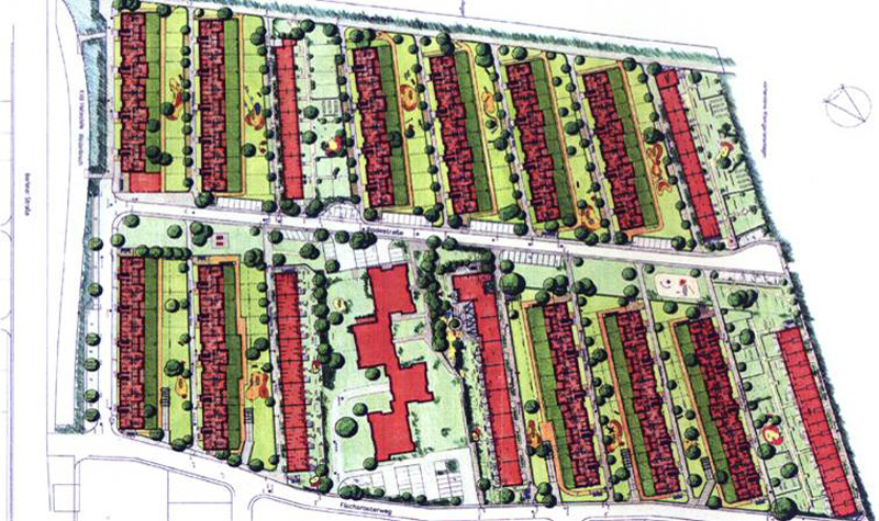 Bei der umfangreichen Baumaßnahme handelt es sich um Sanierung/ Modernisierung, Um- und Anbau sowie Abriss mit Neubau einer Wohnsiedlung, die ab 1931 durch die GAG Köln erstellt wurde. Sie umfasste 16 zweigeschossige Baublöcke mit insgesamt 476 WE. Zunächst wurden Modernisierungen durchgeführt, in den folgenden Bauabschnitten aus Wirtschaftlichkeitsgründen dann jedoch Ersatzbauten (zwei- und dreigeschossig mit Staffelgeschoss und Pultdach) erstellt. Auch die kompletten Außenanlagen wurden neu gestaltet, u.a. auch mit Mietergärten für die Erdgeschosswohnungen sowie Kinderspielplätzen. Fünf neue Tiefgaragen ergänzen die Gesamtmaßnahme. Fertigstellungszeitraum 1993-2006.