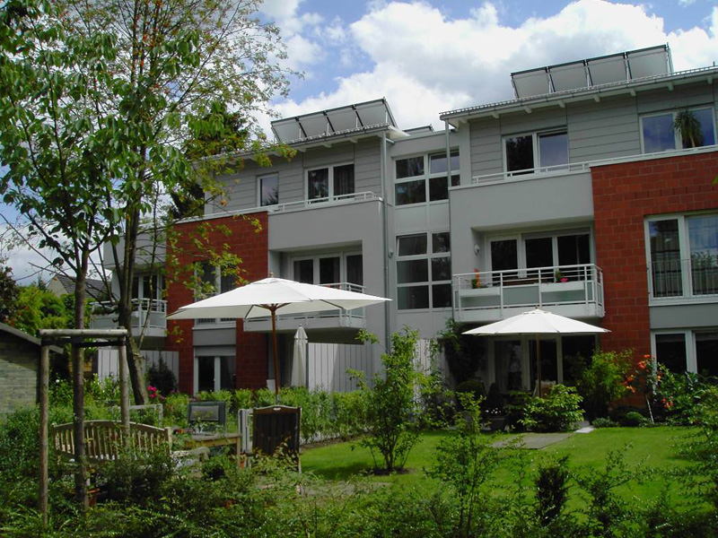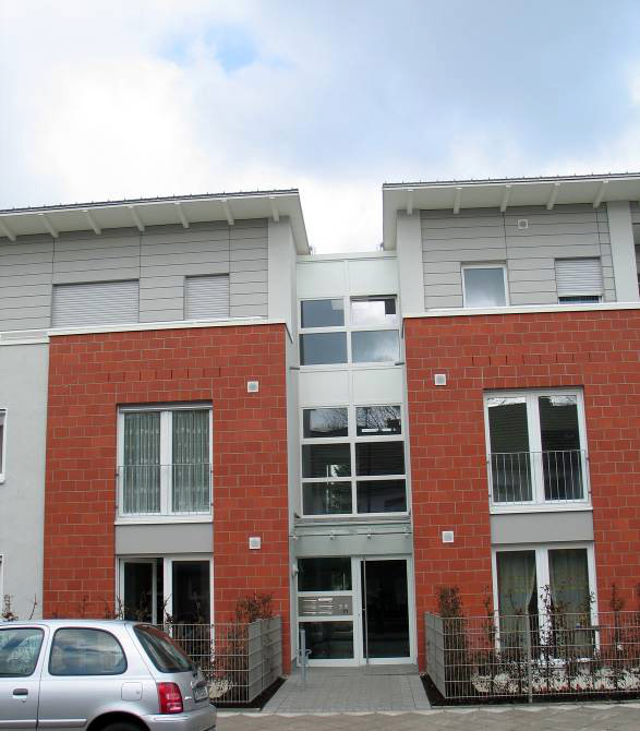 Nach Abbruch der beiden in die Jahre gekommenen Doppelhäuser entstanden auf dem Grundstück 2 Häuser mit insgesamt 14 2- und 3-Raum Wohnungen, wobei an den jeweiligen Gebäudeenden zwei mit separatem Hauseingang versehene Maisonette- Wohnungen mit einer Größe von ca. 120,00 m² entstanden. Die Wohnungen verfügen über moderne Grundrisse mit großzügiger Wohnküche und eine gehobene Ausstattung. Die Häuser werden u.a. mit einer energiesparenden Brennwerttechnik in Verbindung mit einer zentralen Warmwasserbereitung durch Solarkollektoren ausgestattet. Darüber hinaus sind die Außenanlagen mit Mietergärten und einem Kleinkinderspielplatz ausgestattet. Fertigstellung in 2007